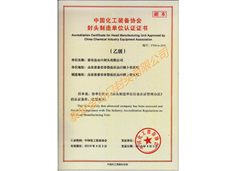 封頭制造單位認(rèn)證證書